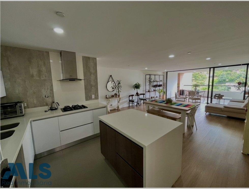 Moderno apartamento en Envigado lugar tranquilo con vista. Área 170.8 mt2, el apartamento cuenta con 3 alcobas cada una con baño privado y vestier, además cuenta con sala,l comedor, amplio balcón, baño social, cocina integral abierta con barra, parqueadero doble paralelo, cuarto útil. Unida con piscina, sauna, gimnasio, placa deportiva, salón para yoga, cancha deportiva, cancha de squash