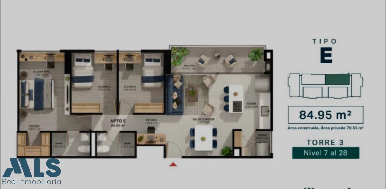 Apartamento en unidad cerrada, tres torres, 6 apartamentos por piso, 3 alcobas y balcón. Es la primera etapa y se entrega en obra blanca en mayo de 2025. Es un proyecto sostenible, en proceso de certificación EDGE disminución en consumos de agua y energÃa, condiciones adecuadas de iluminación y ventilación, acceso a créditos verdes con tasas de interés más bajas. Zonas comunes diferenciadas en mundo activo para el deporte, mundo club para la vida social, mundo aqua para las zonas húmedas, mundo relax para el descanso, mundo natura para la siembra, y mundo feliz para los juegos.